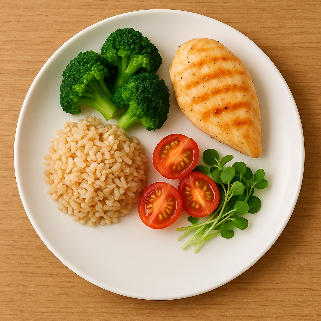 • 식단 구성: 단백질(닭가슴살, 두부, 계란) + 채소 위주, 탄수화물은 잡곡밥 반 공기 정도