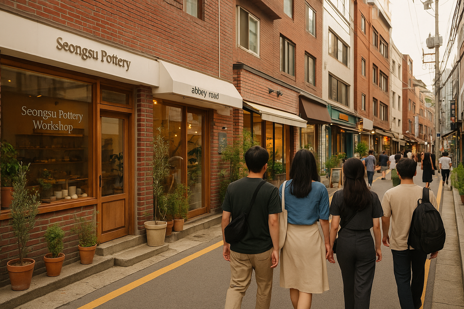 - 성수 힐링 코스: 도자기 클래스 → 브런치 카페 ‘언더프레셔’ → 성수연방 전시
